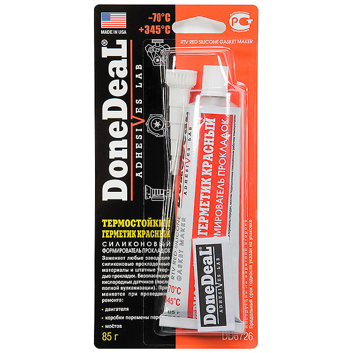 применяется при проведении ремонтов узлов и агрегатов двигателя и трансмиссии, подверженных повышенным рабочим температурам. Заменяет любые заводские силиконовые прокладочные материалы, штатные твердые и резиновые прокладки. DD6724 может использоваться на современных автомобилях, оснащенных кислородными датчиками (автомобиль может эксплуатироваться через 10-12 часов после ремонта).Устойчив к перепадам температуры и к вибрации. Дополнительное нанесение на штатные прокладки улучшает их термостойкость. Не подвергается воздействию автомобильных жидкостей (не рекомендуется длительный контакт с бензином). Не приводит к коррозии деталей из стальных, чугунных или алюминиевых сплавов. Сокращенное время вулканизации увеличивает производительность ремонтных работ.