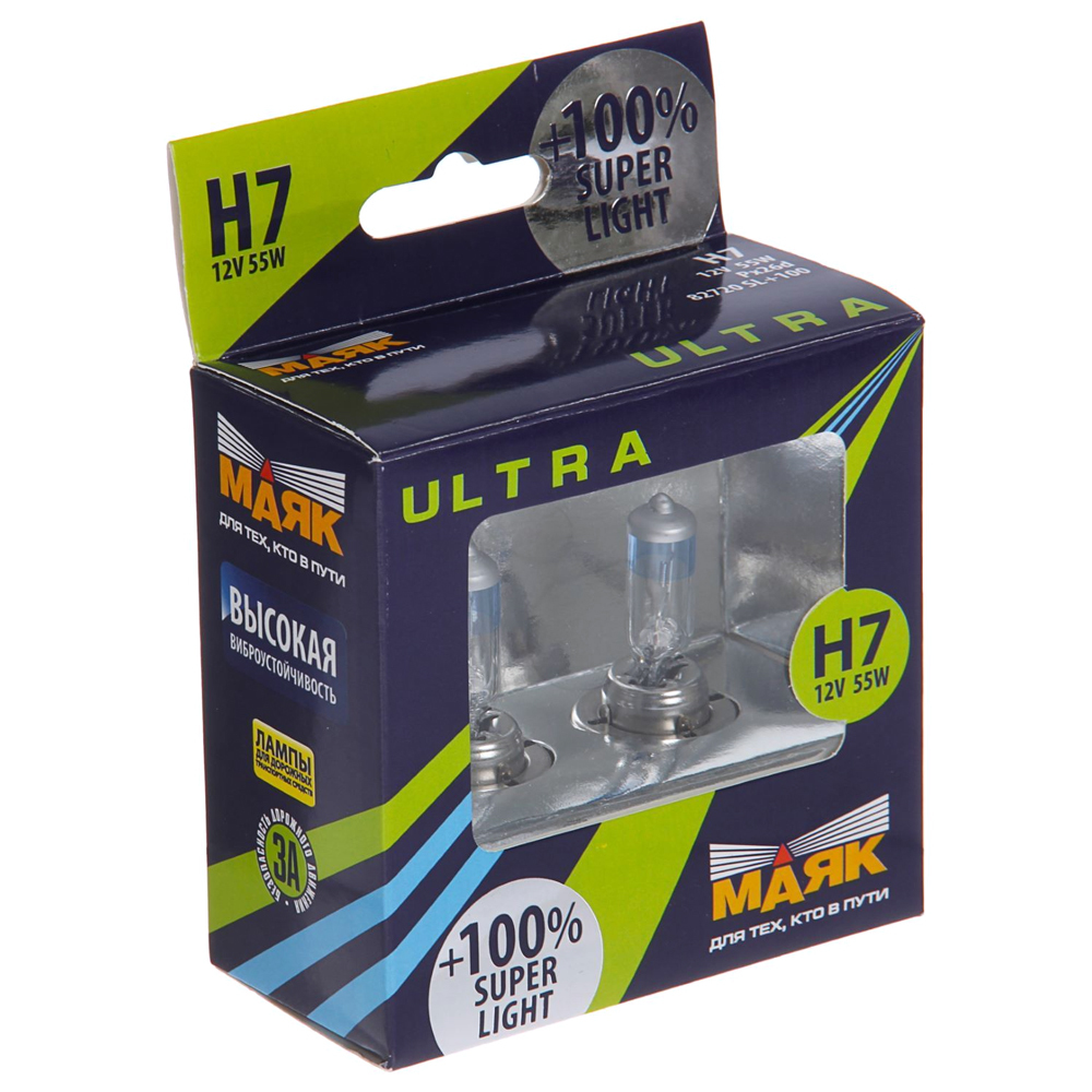 Лампы H7 12V55W МАЯК ULTRA Super Light+100% (2шт)