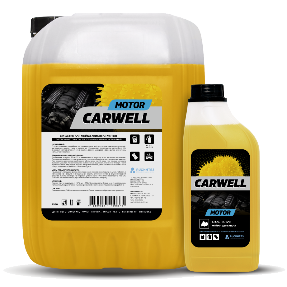 Концентрированный очиститель для двигателей Carwell Motor пользуется большим спросом на автомоечных станциях с большим потоком авто- или мото- техники, в мастерских, гаражах или автокомплексах по обслуживанию тяжелой техники. Им можно мыть и территорию парковок, цехов промышленных предприятий, автодорог, если на них имеются жировые и масляные загрязнения, трудно смывающиеся чистой водой.